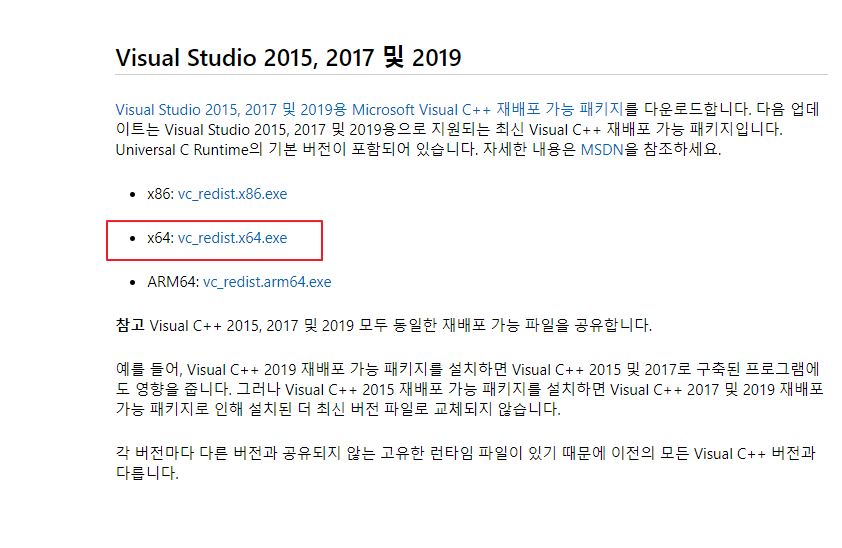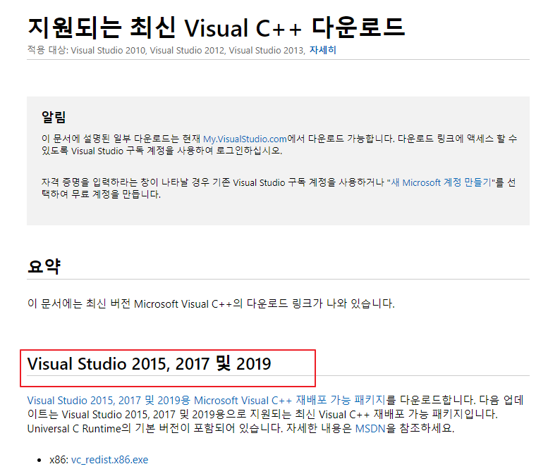 https://support.microsoft.com/ko-kr/help/2977003/the-latest-supported-visual-c-downloads