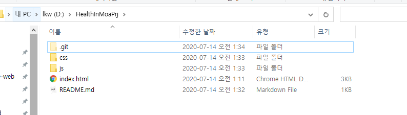 1. github repository에 작업한 프로젝트 파일을 push하기 위해 D드라이브에서 새로운 프로젝트 폴더를 만들고