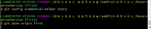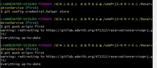 위에서 작성했던 git config 설정때문에 push할 때마다 반복적으로 계정과 암호를 물어볼 수 있다.