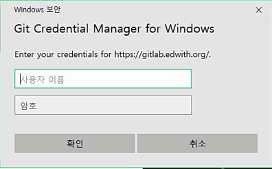 GitLab에서 사용하는 사용자 아이디, 암호를 적으라는 창이 나온다.