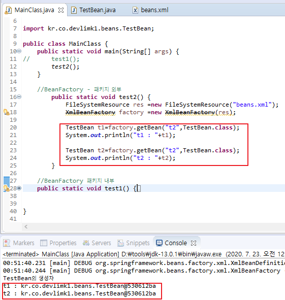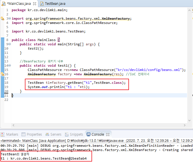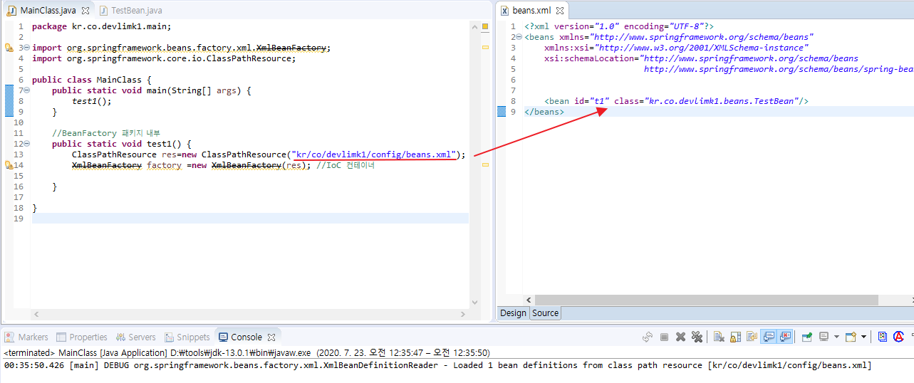 <bean id="t1" class="kr.co.devlimk1.beans.TestBean"/>