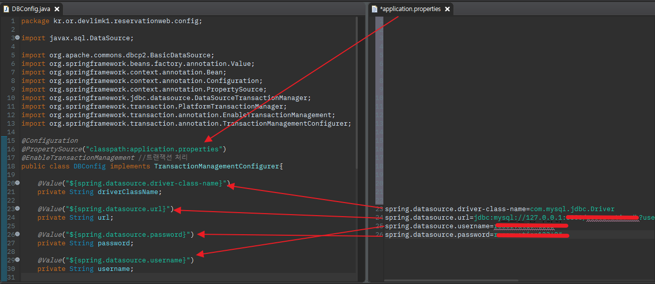 위처럼 코드안에 DB정보를 작성하면 유지보수에 어려움을 겪을 수 있고