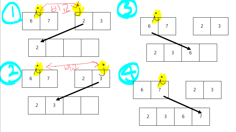 😀 이렇게 합쳐질 때 모든 요소 하나하나 비교해 간다는 것입니다.