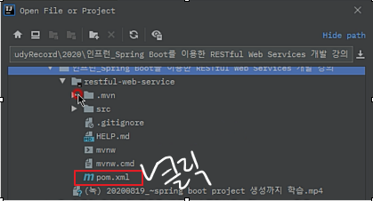 😀 zip파일 압축 푼 폴더에서 pom.xml 클릭!