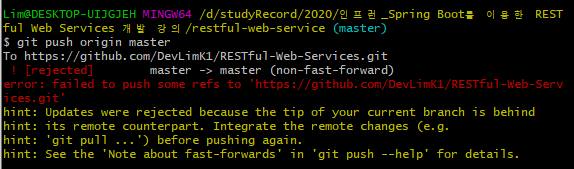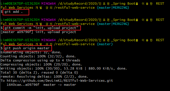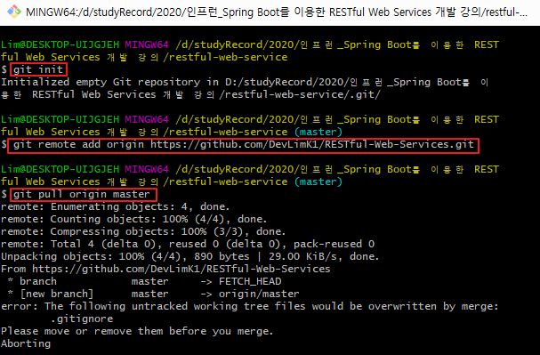 git pull origin master 까지 무사히 잘 실행 된 것을 확인할 수 있다.