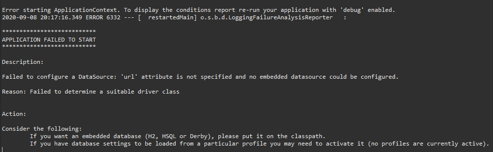 2020-09-08 20:17:16.349 ERROR 6332 --- [ restartedMain] o.s.b.d.LoggingFailureAnalysisReporter :