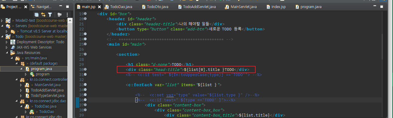 추가로, 코드 아래쪽에 확인해보면 ForEach 태그에서는 list.title 로 작성 가능하다.