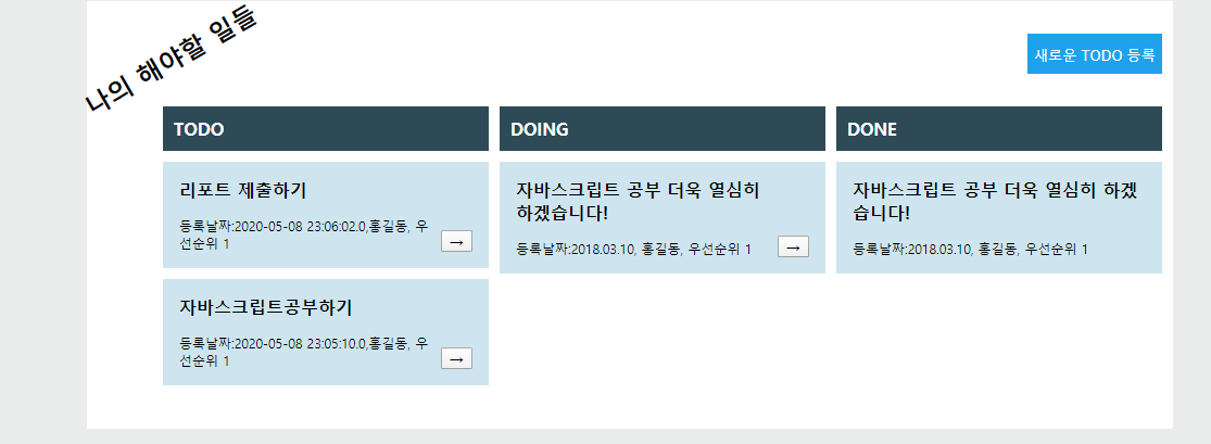 TODO 리스트에 결과 데이터 2개가 출력되는 것을 확인 할 수 있다...!!!😁
