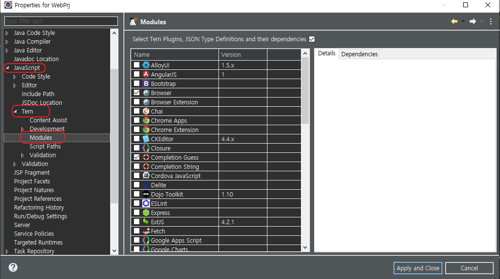 이클립스에서 자바스크립트 코딩 시 DOM API, jQuery, ESLint, Bootstrap 등 많은 모듈을 지원하고 ECMAScript 6까지 사용할 수 있습니다.