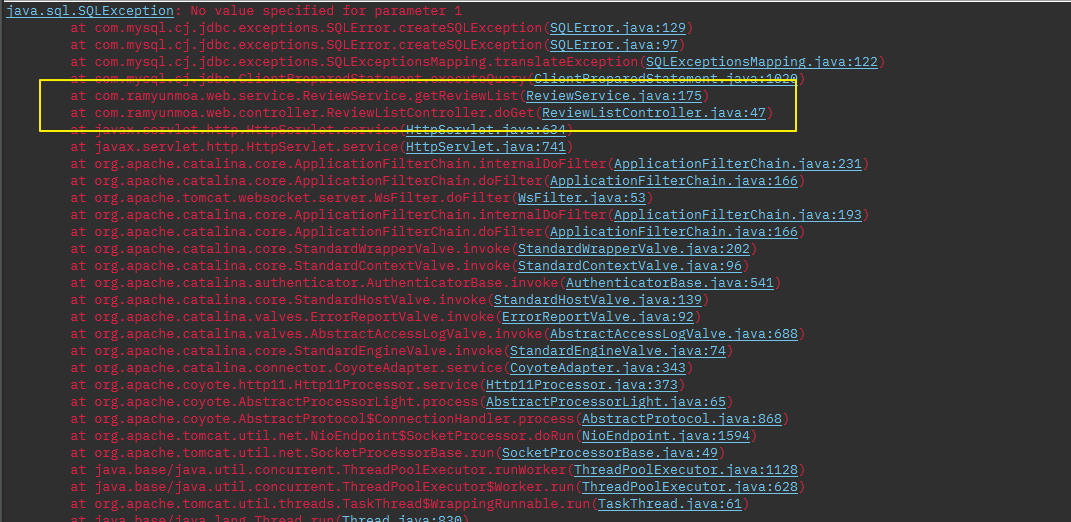 아래 코드는 ReviewListController.java (사용자의 요청을 받아 뷰(jsp)에 데이터를 넘겨줌)