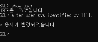 3) alter user sys identified by 1111; --> sys의 계정 비밀번호를 1111로 변경