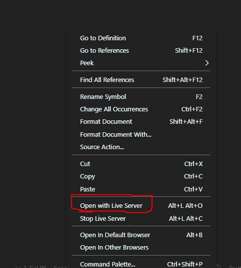 5)다시 index.html 창에서 오른쪽 클릭 후 Open with Live Server 실행시키면