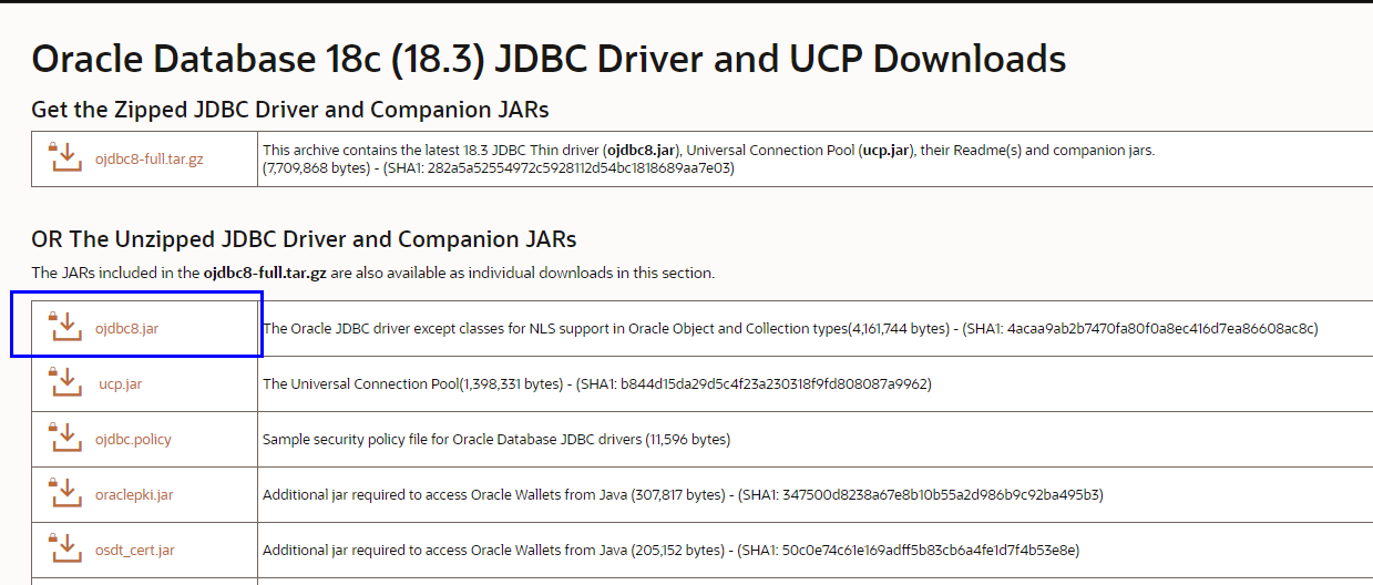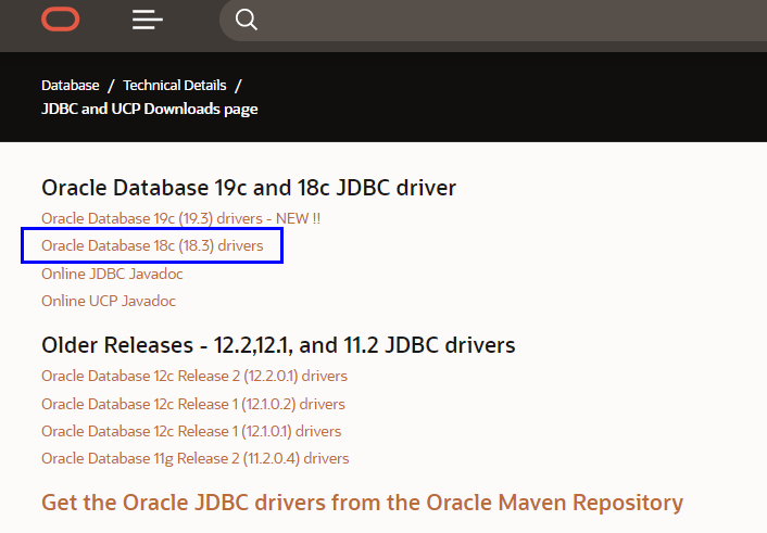 4) 저자가 설치했던 Database 버전은 [Database 18c Express Edition] 이므로 아래 표시한 18c drivers를 다운!