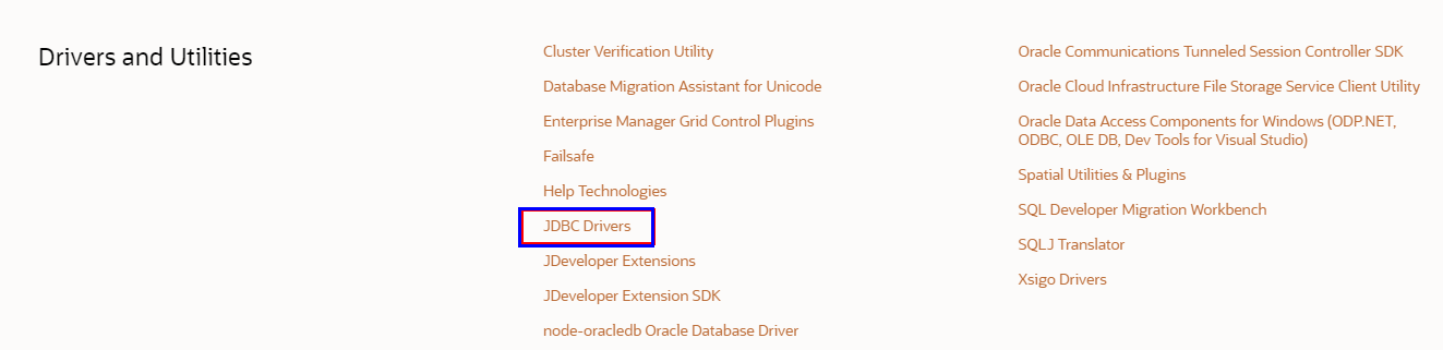 3) Drivers and Utilities 메뉴에서 JDBC Drivers 클릭